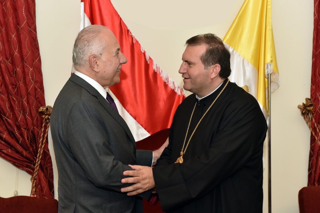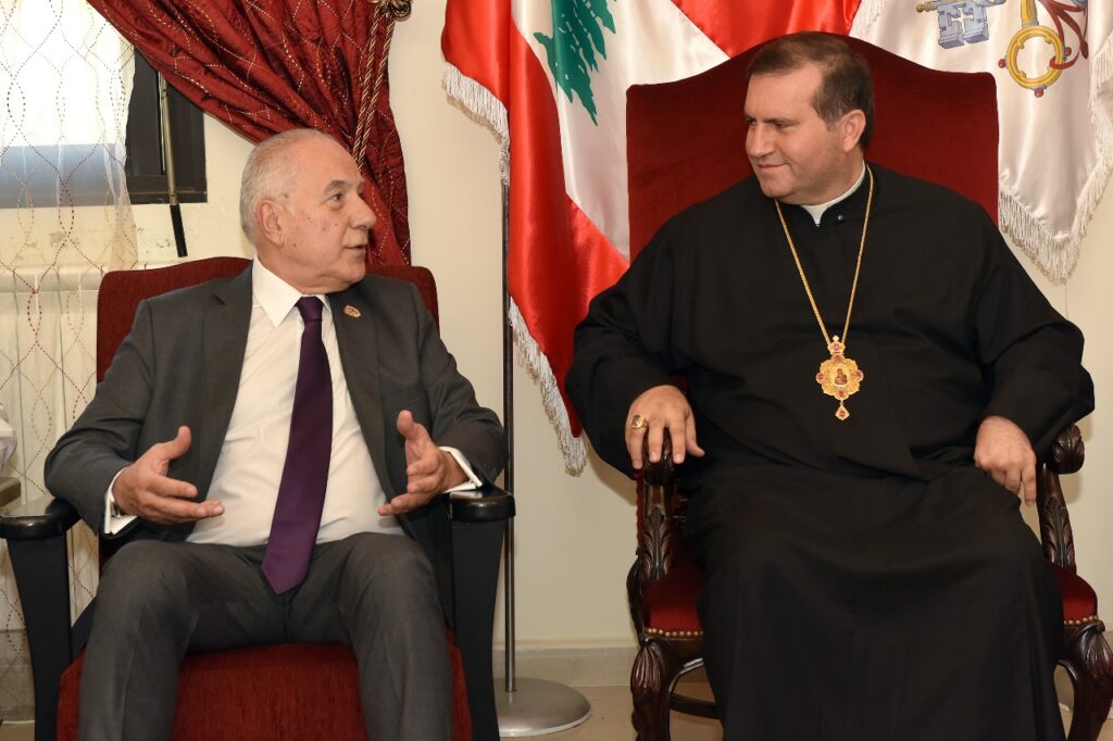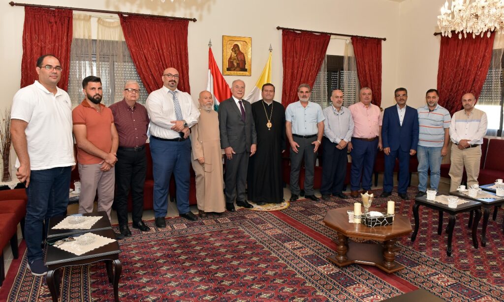 زار رئيس غرفة التجارة والصناعة والزراعة في طرابلس والشمال توفيق دبوسي ووفد لجنة تشغيل مطار الرئيس رينه معوض في القليعات عكار راعي ابرشية طرابلس للروم الملكيين الكاثوليك المطران أدوار ضاهر، وذلك في مقر المطرانية في ضهر العين ـ الكورة بحضور المونسنيور الياس البستاني.